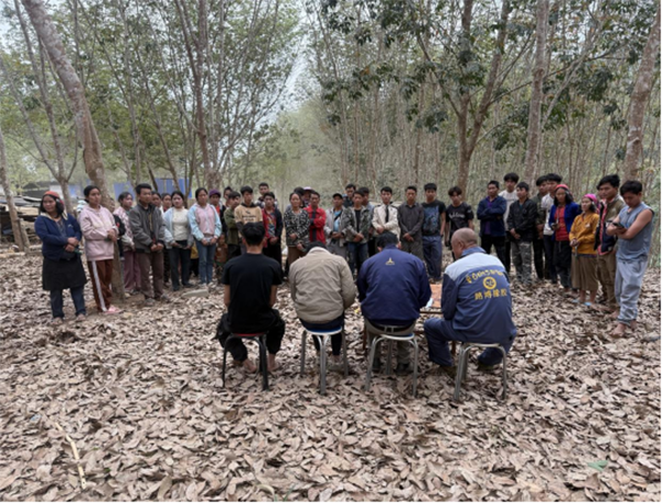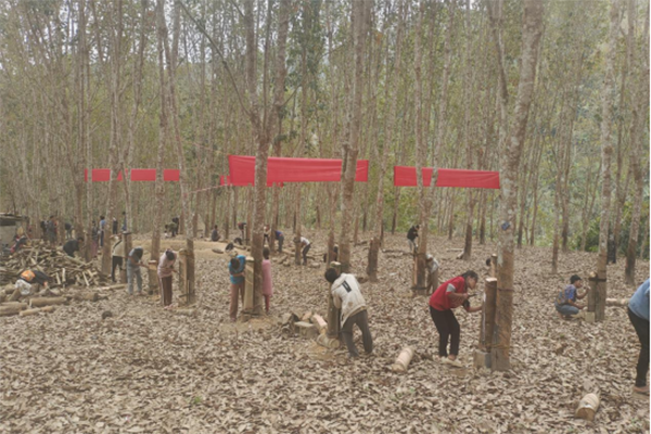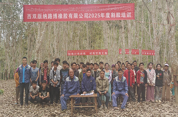 為積極踐行新發(fā)展理念,全面提升公司項(xiàng)目區(qū)膠農(nóng)橡膠管理水平與割膠生產(chǎn)技能,助力天然橡膠產(chǎn)業(yè)健康發(fā)展,實(shí)現(xiàn)膠農(nóng)增收,西雙版納路博橡膠有限公司于2025年3月8日至3月15日,在境外橡膠種植基地成功舉辦了割膠技術(shù)培訓(xùn)活動(dòng)。此次活動(dòng)還特別邀請(qǐng)了老撾豐沙里省奔代縣農(nóng)業(yè)局及勞動(dòng)局的專業(yè)技術(shù)員到現(xiàn)場進(jìn)行指導(dǎo)。