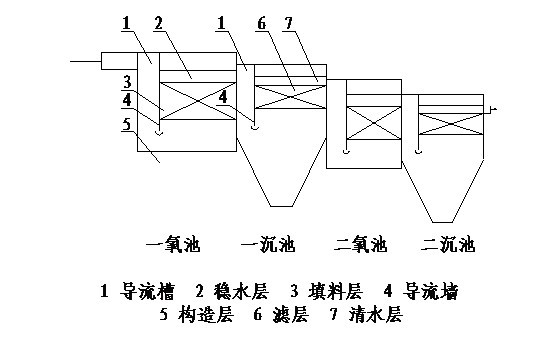 2.0.2 生物接觸氧化系統(tǒng)宜采取二段式(見附錄A),即第一段接觸氧化(簡(jiǎn)稱一氧)→第一段接觸沉淀(簡(jiǎn)稱一沉)→第二段接觸氧化(簡(jiǎn)稱二氧)→第二段接觸沉淀(簡(jiǎn)稱二沉)。